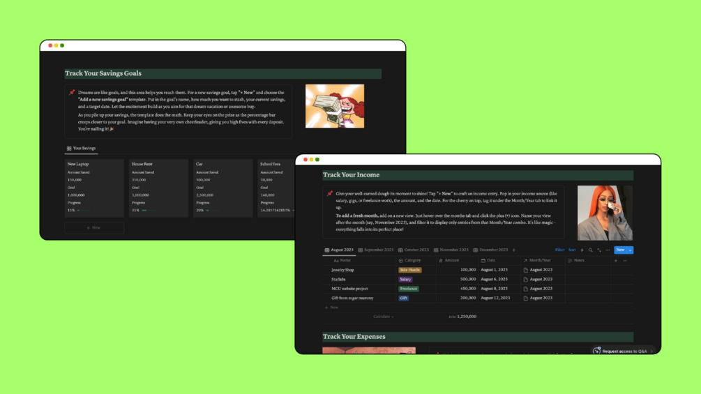 You'll get an all-in-one template that can help you keep track of your income, expenses, and savings goals.