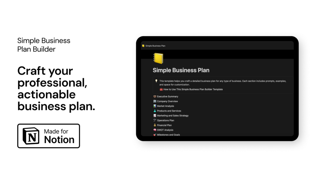Start your business in 2025! Craft a professional, actionable business plan with ease using this all-in-one Notion template designed for entrepreneurs.