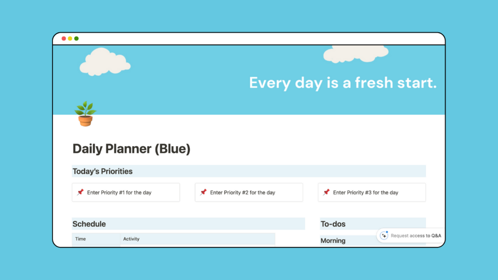 You'll get a link to a notion template that helps you plan your daily schedule, priorities and tasks